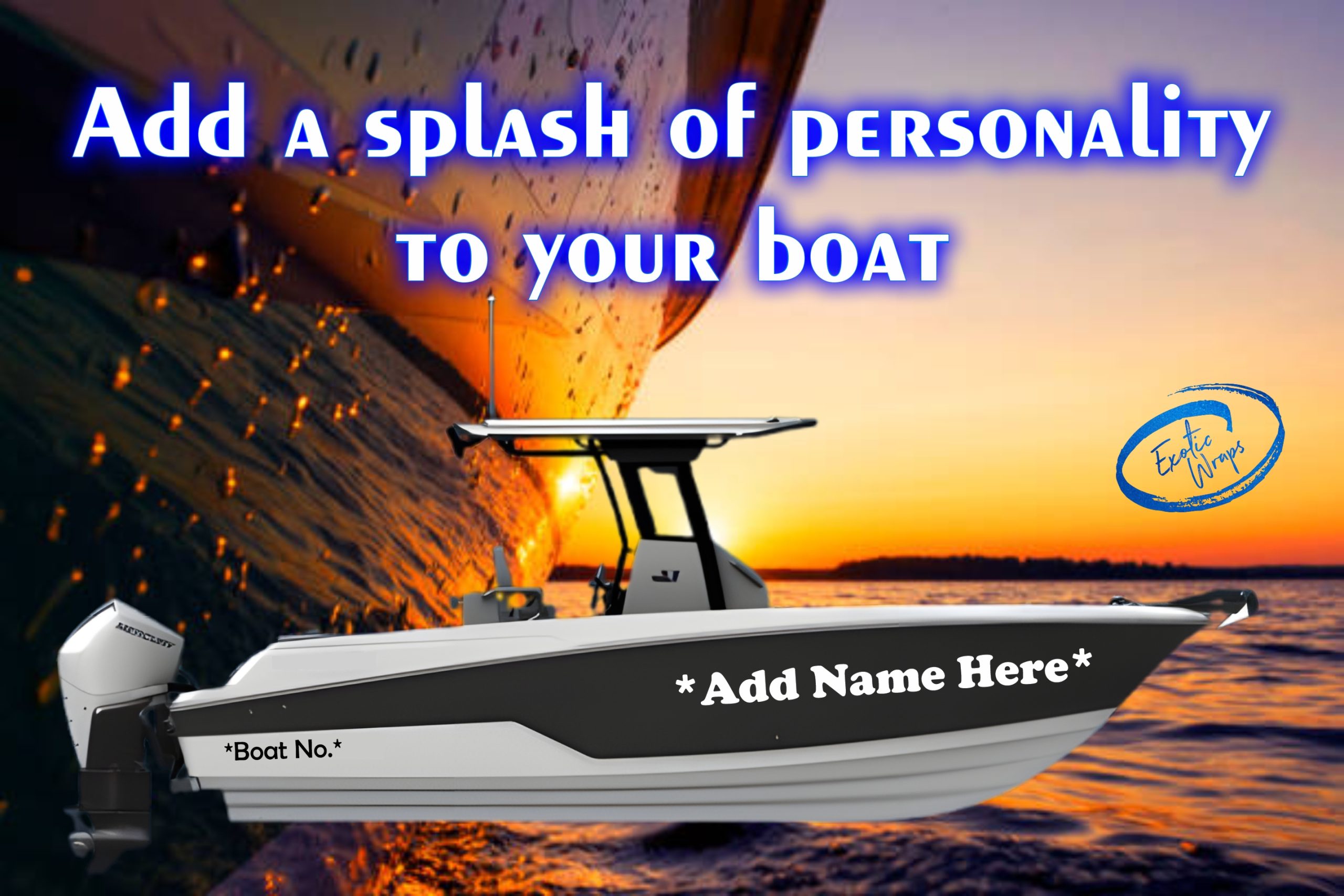 Please note this will be payment for design. Boats vary in size and differ from fresh water to Sea. Vinyl will vary from 3M to Avery Supreme. Please email design@exoticwraps.co.za. Please note this is not for full wraps this is decals that you can apply only. The fee is for booking a kit but final price will vary based on the above. This will be deducted from your final signed off artwork